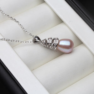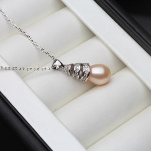 Real 925 Silver Necklace For Women,White Black Water Drop Natural Freshwater Pearl Pendant Fine Jewelry Anniversary Gift